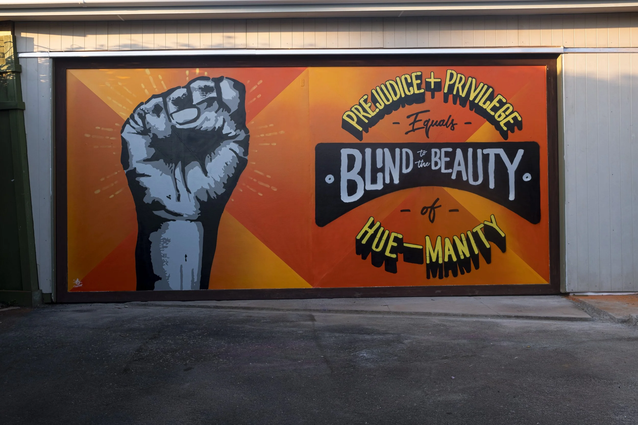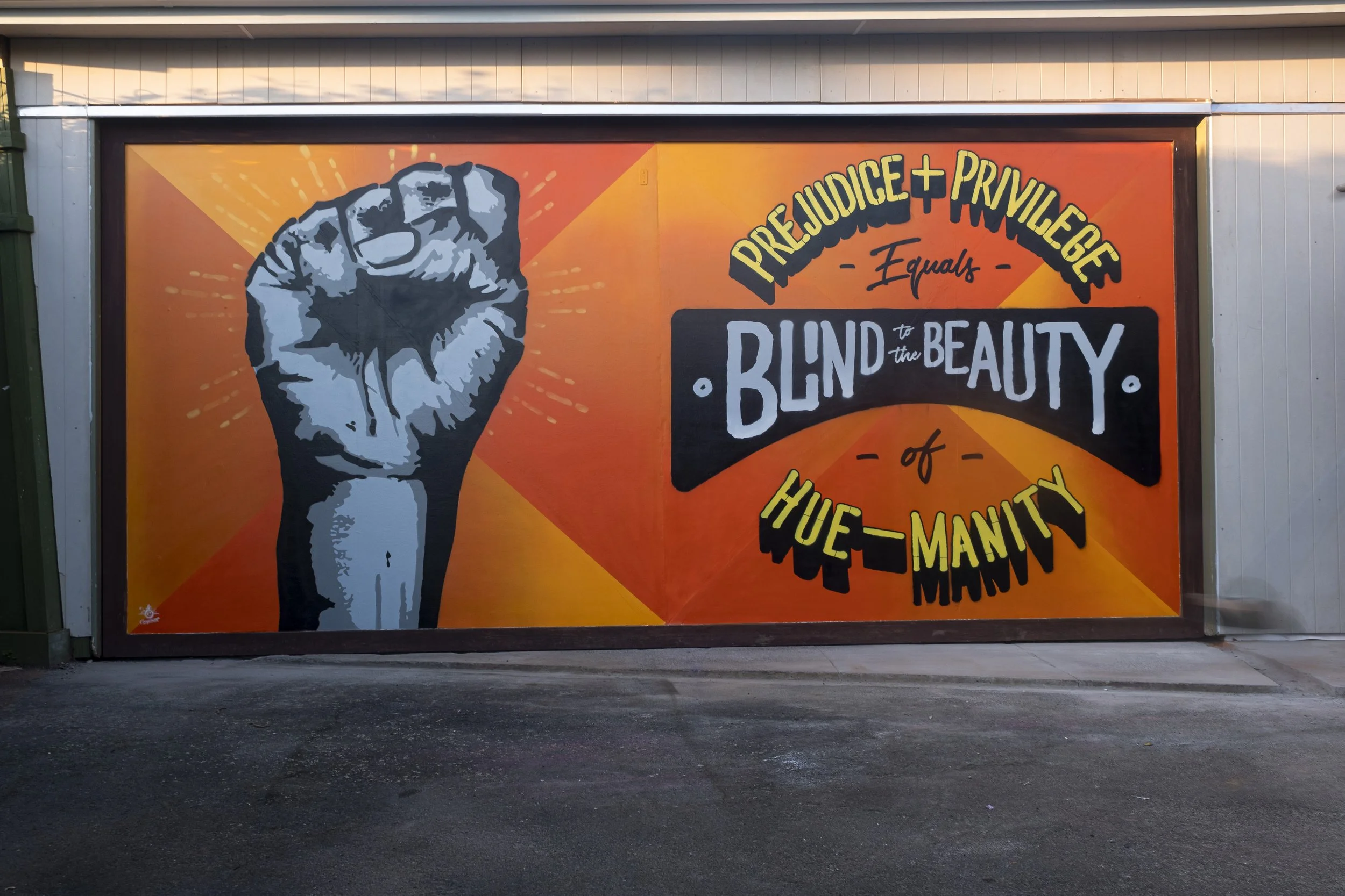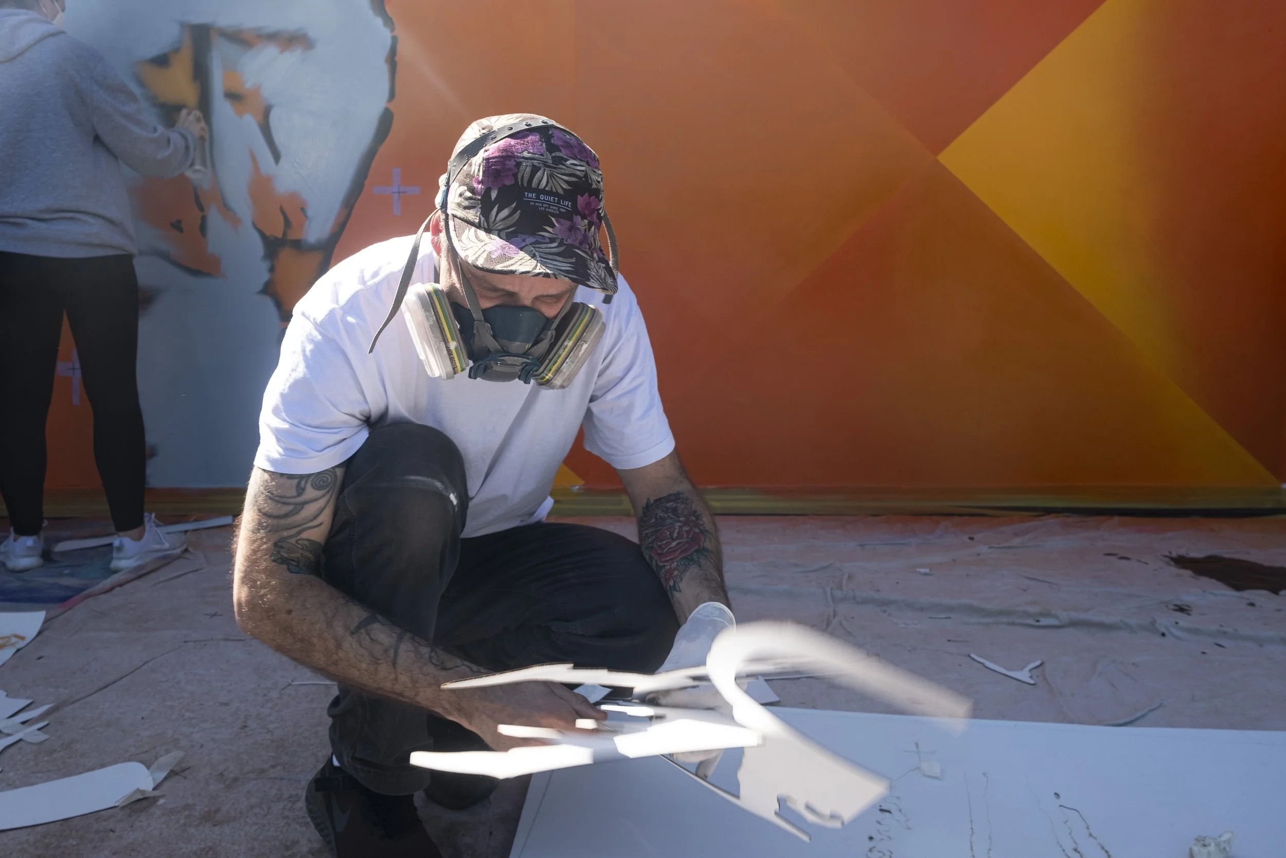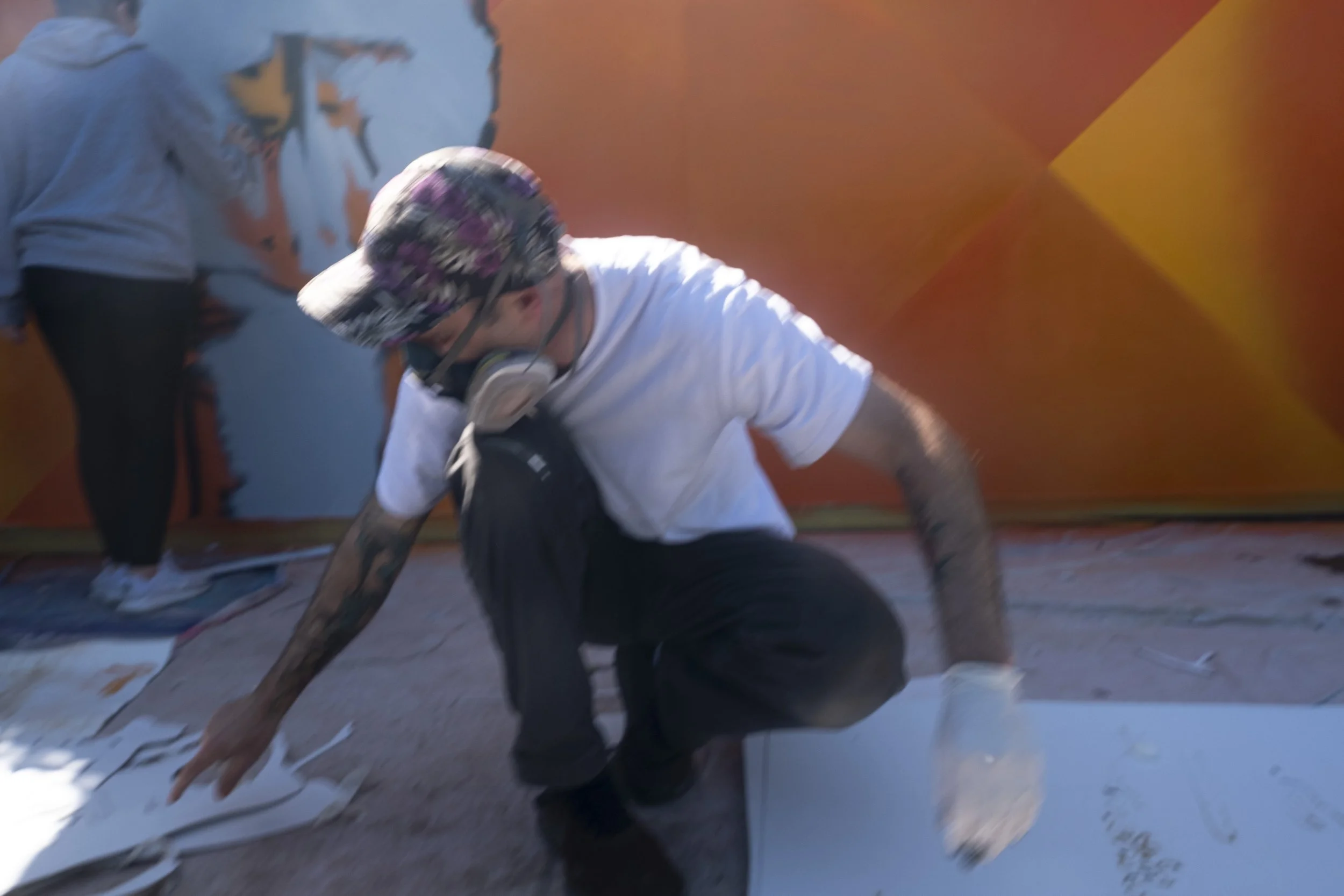 A collaboration between artists and students to inject energy, nature & colour to the heart of the school.Abstract geometric patterns designed to represent the growth & progression of youth development provide the base and add colour to the walls. These geometric shapes also help highlight other important elements like the school colours and a subtle reference to the āVā for Vauxhall.